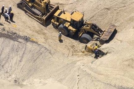 A worker operating a bulldozer for P.A. Landers in Plymouth was buried alive and died in freak sand avalanche Tuesday morning.