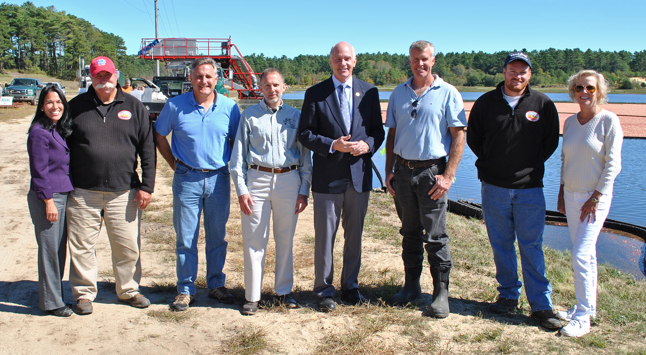 In 1816, retired Revolutionary War veteran and sea captain Henry Hall began cultivating the first cranberry bog in Dennis, Massachusetts. Two hundred years later, in the town of Carver, the community that is home to the greatest number of cranberry bogs in the Commonwealth, attendees gathered to celebrate the birth of the current largest agricultural food crop in Massachusetts. This iconic berry is now grown over 13,250 acres of cranberry bogs, paralleled by an additional 60,000 acres of support land. U.S. Representative Bill Keating, co-chair of the Congressional Cranberry Caucus, addressed those gathered with an update on current Congress progress supporting the industry. Representative Keating’s district represents nearly 90% of the cranberry acreage in Massachusetts.
