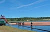 Public and industry officials and the media gathered Monday at A.D. Makepeace Company’s Cranebrook Bogs in Carver, donning waders and engaging hands-on in a wet bog harvest, bringing in the crop with the harvesting crew. Many took aerial tours of the bogs by helicopter, witnessing the interconnectivity of water and open space to the bogs. The event also featured the unveiling of the Association’s newly created educational traveling exhibit: Rhapsody in Red: 200 Years of Cranberry Growing in Massachusetts, on tour throughout the region at public organizations and events through 2017.
