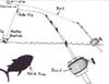 Using an elastic bridle to rig live baits will help to minimize injury to the bait. This is important because live pogies, mackerel and bluefish often times require a lot of time and energy to acquire. It is vital to keep the baits alive and frisky. Instead of traditionally hooking a bait through the top of the back or through the snout, a bridle allows an elastic to be threaded through the bait-much like stitches through skin. This way the hole pierced through the bait is much smaller than that created by traditionally hooking the bait. The bait will swim long and with more vigor due to this small alteration in technique.