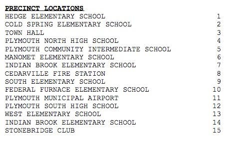 In Plymouth, the polls will be open from 7 a.m. to 8 p.m. These are the polling locations: