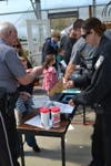 Deputies fingerprinted and photographed children so their parents had photo identifications. On the porch next door artists painted faces and arms.