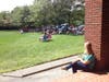 Singer-songwriter Kiley Evans performed on the lawn at Plymouth Public Library Thursday. More than 100 people attended the free outdoor show. Evans performed a 3-piece accoustic set for two hours in the sun.