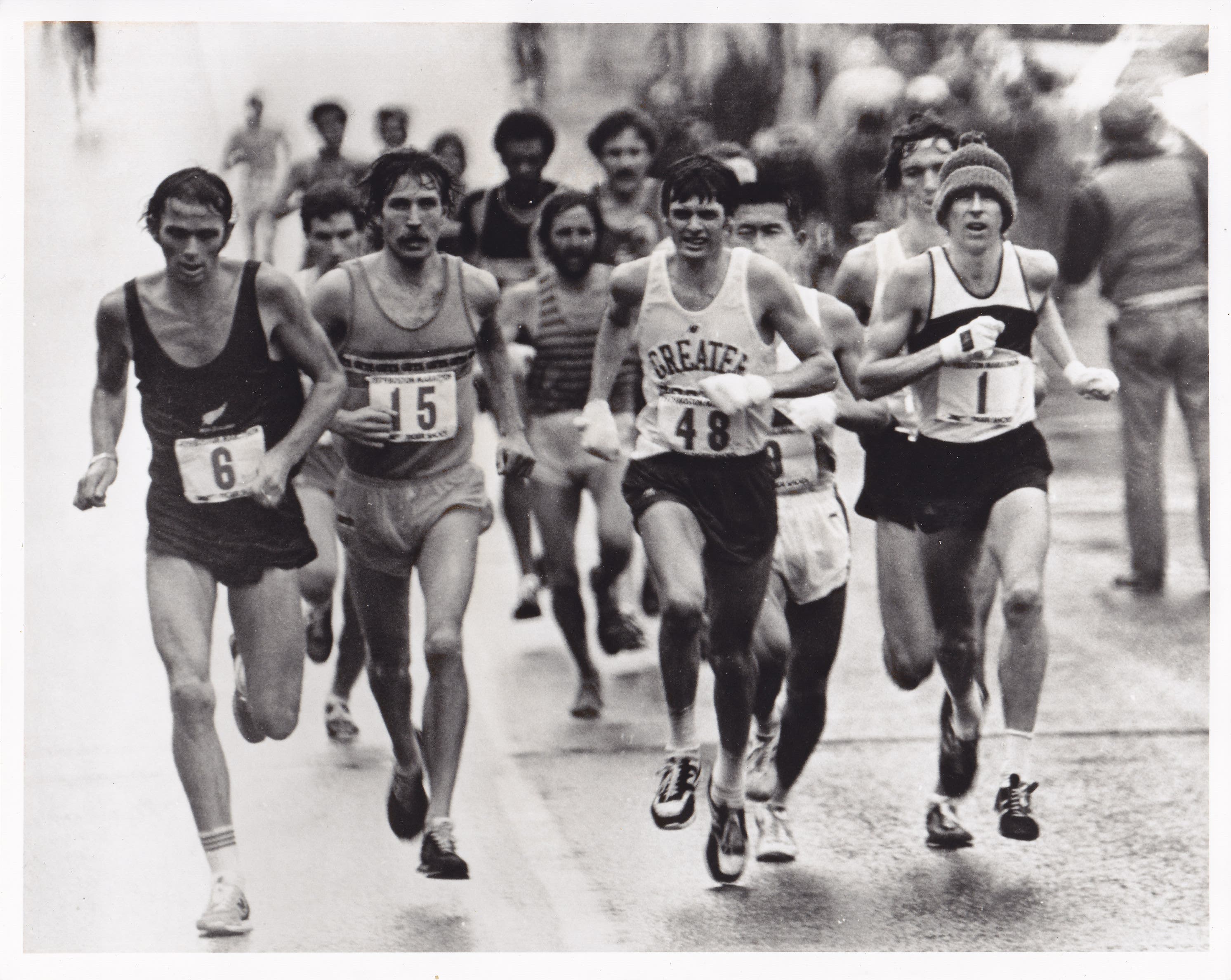 Rodgers won both races four times each between 1975 and 1980, twice breaking the American record at Boston with a time of 2:09:55 in 1975 and a 2:09:27 in 1979. In 1977, he won the Fukuoka Marathon, making him the only runner ever to hold the championship of all three major marathons at the same time. He made the 1976 U.S. Olympic team and raced the marathon at the Montreal Olympics in 1976, finishing 40th. He did not participate in the Olympics in 1980 due to the U.S. boycott over the invasion of Afghanistan by the USSR.