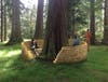 Boston architect Yugon Kim’s Outside-In plays with the concept of what is inside and what is out in a shelter that wraps the space around Heritage’s Tulip Tree. Wing’s Spire by Nancy Winship Milliken uses handmade irregular netting of mono-filament to create an airy interior with the sound of wind as an experiential element. Designer Joel Reider utilizes a sod exterior in Eaves/Grass, while Tessa D’Agostino creates a space for writing poetry while listening to Heritage’s rushing Flume Fountain in her installation called Temple of Theosophical Truths.