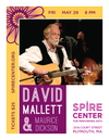 The Spire Center for Performing Arts, the entertainment mecca of Plymouth, presents folk artist David Mallet, Friday, May 29, 8 pm, at The Spire Center for Performing Arts, 25 ½ Court Street, Plymouth. Singer/songwriter Maurice Dickson opens.