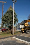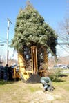The Simes Foundation, a tree removal company, and many volunteers, moved the 30-odd-foot Douglas fir from its former home in front of Luke's Liquors to its new home at Manomet Commons, in front of the Simes House.