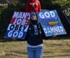 With signs painted with phrases like "GOD HATES AMERICA & IS KILLING