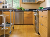 The rustic charm of cork and the comfortable pliability and durability of rubber gives your kitchen floor a comfortable soft feel and stands up to heavy kitchen traffic. Sustainably harvested cork is blended with recycled rubber, imbued with different colors and then cut into rolls or tiles to give you a most green flooring material for your kitchen.