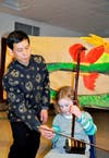 The celebration ended with an instrument “petting zoo” where the children could try out various instruments, including the erhu. They could also participate in an experiment on the physics of sound which had been loaned by the Museum of Science, have their faces painted, and check out a table of books about music.