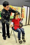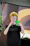 The music was followed by the demonstration of another Chinese festive activity, the off-string or Chinese yo-yo. Fifteen-year-old Donald Hodgkinson explained the difference between the typical yo-yo usually seen in the U.S., which is attached to a string, and the Chinese model which is a larger hour-glass shaped object manipulated by a string attached to two sticks held by the performer. Hodginkson, who is ranked in the top fifty yo-yo contenders in the U.S., admitted that he was new to the off-string version. Nonetheless, he performed some dazzling feats that wowed the crowd. He also quickly showed off the blazing virtuosity that has won him championships with the regular yo-yo.