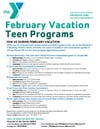 Teen February vacation activities: get out of the house, be active, or try something new! Unless noted, the following activities are open to grades six and up.