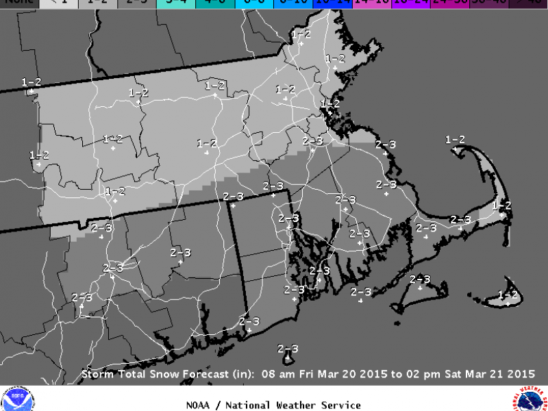 A quick-moving storm is expected to bring 1-2 inches of wet snow across much of Eastern and Central Massachusetts on Friday night and Saturday morning.