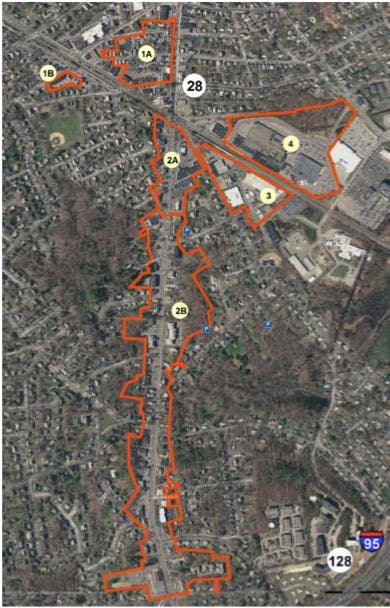 - South Main street from the railroad tracks to Stoneham border (site 2B)