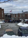 Tuesday's snow storm canceled school for two days but Friday it was Reading's turn to demonstrate. Following the reading of the names, students walked out of school and gathered under the American flag in freezing temperatures and bitter winds to listen to classmates talk about the shooting and its impact.