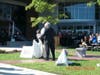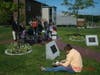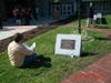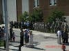 On Tuesday, Reading Firefighter Lt. Mark Dwyer helped Collizi Memorials Inc. install the granite slants and benches that will make up the 9/11 memorial to be unveiled Sunday at Reading Memorial High School.