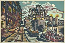 Don Gorvett has produced large-scale reduction woodcut prints for decades. His command of the medium results in work of unforgettable complexity, scale and expressive power. This spring, Salem State University’s Center For The Arts honored him with the 2013 Lifetime Creative Achievement Award. The Winfisky Gallery is proud to start the 2013/14 season by hosting this uniquely instructive exhibition where visitors will not only be able to see the prints but also the rarely-seen massive woodblocks which yield the prints.