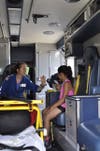 Photo - Boston MedFlight Emergency Responder offers a demonstration to a curious Jazzy Bouras, 7, of Salem, MA, at Liberty Tree Mall on June 20.