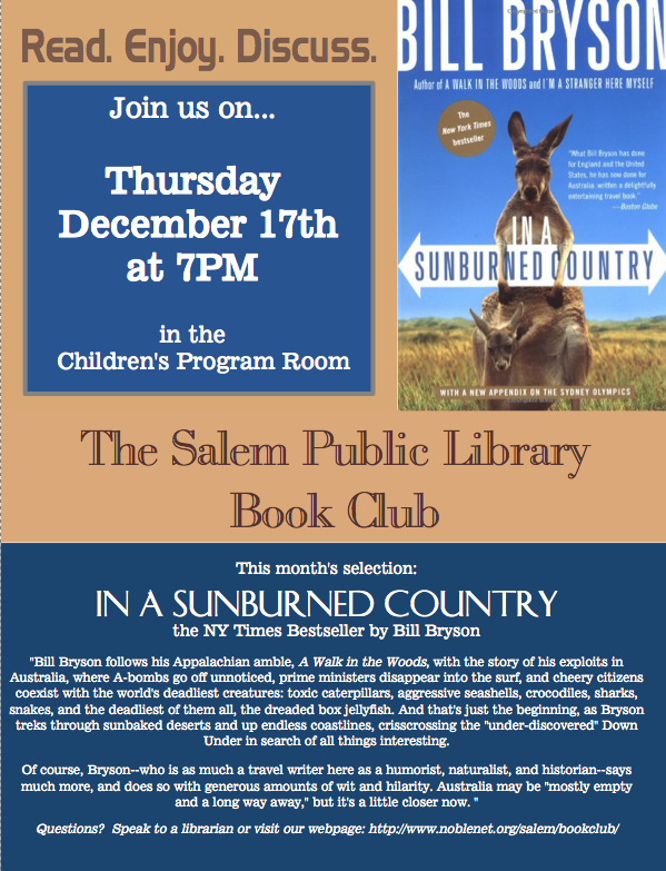 This club is for adults of all ages. Copies are available on display at the Salem Public Library.