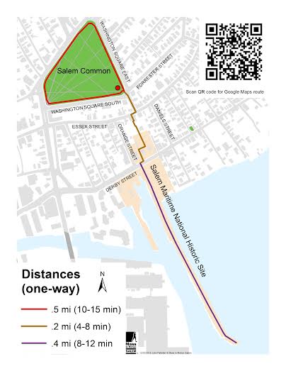 Salem’s First Day Hike, from 12 p.m. to 2 p.m. Saturday, January 1, 2016, will offer several courses with varying degrees of difficulty. People can walk around the Salem Common, walk from the Common to Derby Wharf Light House or just walk from the beginning of Derby Wharf to the light house. The attached map has more details on the hike’s course.