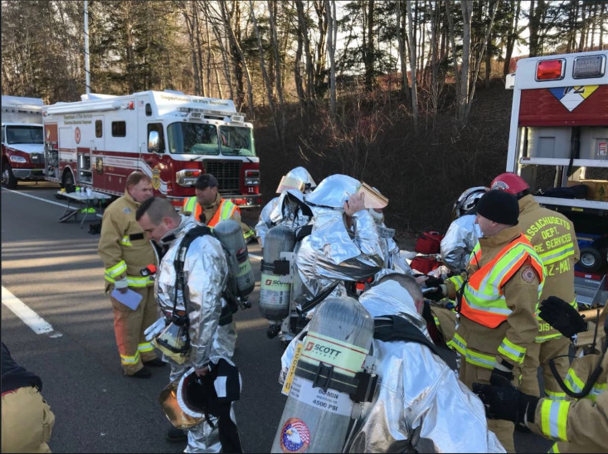 The crash happened shortly after 5 a.m. by Exit 8. Officials are using foam and sand to try to coat the road. The northbound side of Route 24 remains closed.