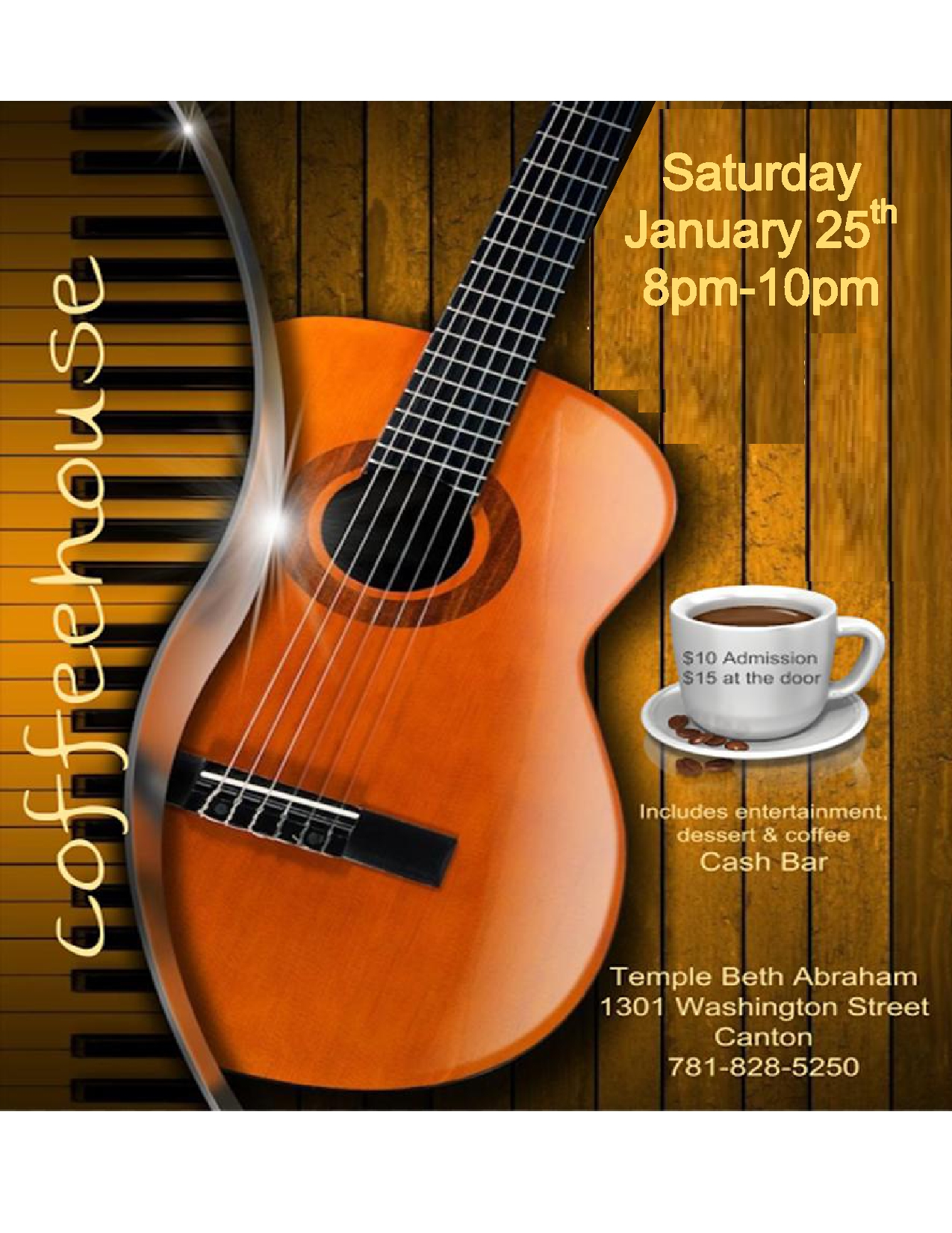 Join us on January 25th at 8pm. Temple Beth Abraham invites the community to join us for a relaxing evening of music, friends, and fun! Performances will include our very own internationally recognized Rabbi David, along with other fabulous local musicians!