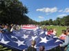 Food stands lined the park, and bands played throughout the day while stilt-walkers and jugglers entertained. The day was also filled with Patriotic tributes, including the unveiling of five giant American flags that covered the park's fields.