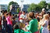 “This is our nod to the “Relay for Life” event,” Ms. Bakey said of the surprise gathering June 17. The entire school, from kindergarteners to eighth graders and all the staff, some 600 people, dressed in cancer ribbon colors and lined the track surrounding the field.