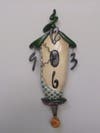 Blue Cloud Gallery, a unique art and handcraft gallery in Ball Square, recently announced that it will be featuring the work of artist Christine Cachia Cummings during the month of August. The artist is renowned for her fanciful sculptured wooden clocks. Her clocks are sculpted from one solid piece of basswood into playful, intertwining colorful organic shapes reminiscent of Dr. Seuss illustrations. The fun continues on the reverse side which is carved just as finely as the front. Christine designed a swing door allowing easy access for a quick time change. The various shapes work together in a harmonious and lyrical manner. Her clocks are beautiful works of art in addition to being functional timepieces.
