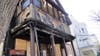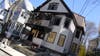 Today, the front of the home shows significant fire damage, and windows on all floors have been broken out. Shards of glass and charred debris litter the front yard and sidewalk, and burned baby strollers sit in ashes on the front deck. Based on the extent of the damage, it appears none of the apartments in the building are habitable.