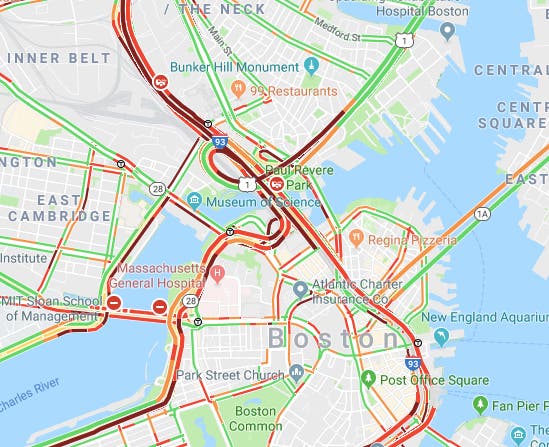 #MAtraffic Truck Fire I-93 NB at the Zakim Bridge. No injuries. Right two lanes closed. Expect delays. @BostonFire is on scene.
