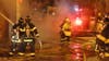 Firefighters attacked the fire in wet, cold, snowy conditions, due to an early season October snowstorm that was bringing inches of slushy snow to the Somerville area.