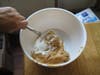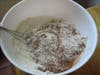 - Next stir in the wet ingredients; the oil, warm water, and vanilla.