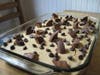 For me, I have always been a fan of the combination of chocolate and peanut butter, and luckily peanut butter frosting is actually pretty easy to make. So to make yourself a Mighty Peanut Butter Chocolate Cake follow the directions for making the above directions for the cake.