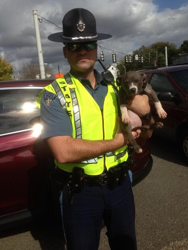 State Trooper Saves Pit Bull Puppy from Traffic in Somerville