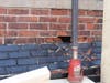 The accident buckled the facade inward and, at one place, punched through brick wall entirely.