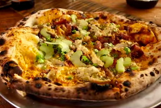 Photo: A4’s buffalo chicken and gorgonzola pizza. Credit: Phantom Gourmet.