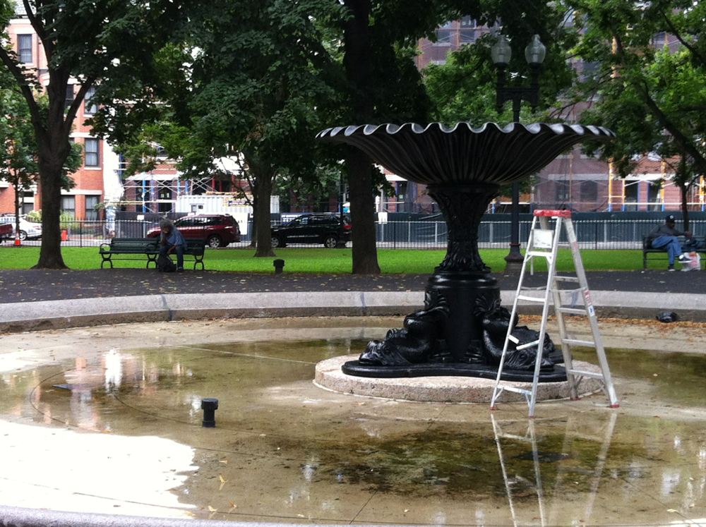 "Just the idea of the water going down the drain was terrible, and that was going on for years and years," Troutman told South End Patch in early April. "And the cast iron fountain will be restored. Before it was just a little dribble, and I think the whole basin will be filled with water, so it will be much improved and will be really beautiful."