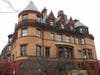 A fair amount of original detail remains, inside. Some original woodwork remains, and several of the building's seven fireplaces have hearths with ornate designs of wood and granite. There's already an elevator in the building. But, any rehab project would cost in the millions.