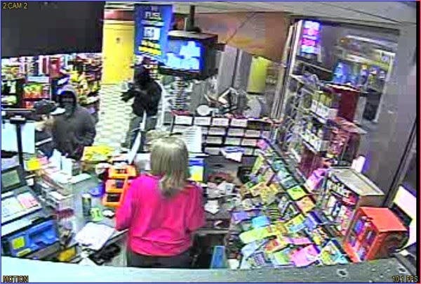 One of the suspect’s ordered a customer to get on the ground while the other suspect went behind the counter and demanded cash from the clerk, said police.