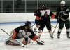 As soon as Stoughton was at even strength, it had an odd-man rush that created a partial breakaway for senior Larry Hixon, that Almeida saved, but the rebound came right out to senior Dave Campbell who sent a hard slap shot into the net, with 2:11 left.