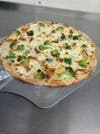 The next one is The Canton St. A white sauce pizza topped with cheese, chicken and broccoli. This has been a very popular item for us. Great feedback from the guests .