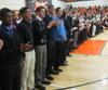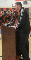 Head football coach Greg Burke thanked the fans for their support during their historic season, which included going to the Division 3 state semifinals, losing to Plymouth South, 14-12, after beating rival Oliver Ames for the Division 3 Southwest title. Burke also introduced all of his seniors, who will be playing in their last games of their career Thursday morning at Canton High.