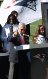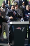 And ironically enough, the man that drew the loudest applause Sunday for his words was Patriots head coach Bill Belichick. The coach, true to form, uttered just two words over the microphone … two words that ignited the boisterous crowd of 15,000.