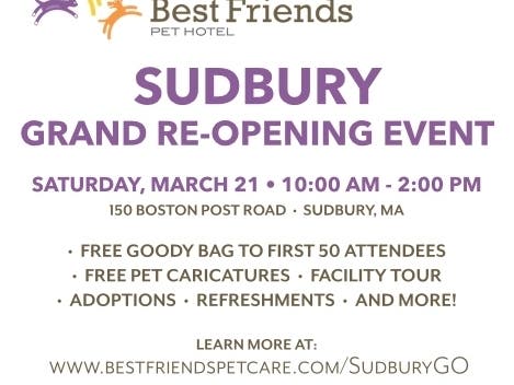 BEST FRIENDS PET HOTEL UPGRADES SUDBURY, MASS. CENTER - PUBLIC INVITED TO GRAND RE-OPENING PARTY ON MARCH 21 FROM 10 A.M. – 2 P.M.