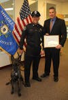 Pebbles is a Labrador Retriever and Elmo is a Dutch Shepherd, one pairing up with officer John Pimental, Jr., and the other with Michael Seamans, both veteran members of the MSO.