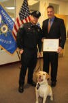 Middlesex Sheriff Peter J. Koutoujian presented badges to Pebbles and Elmo, who join the MSO’s K-9 Unit after having completed 12 weeks of training at Alpha Canis Advanced K9 Training & Care in Weymouth, said an announcement.