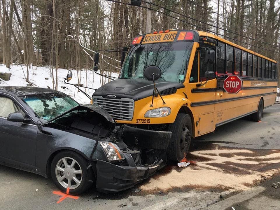 SUDBURY, MA — Police and fire departments responded around 3:46 p.m. on Wednesday to a head-on crash involving a school bus and a car on Concord Road near Plympton Road in Sudbury.