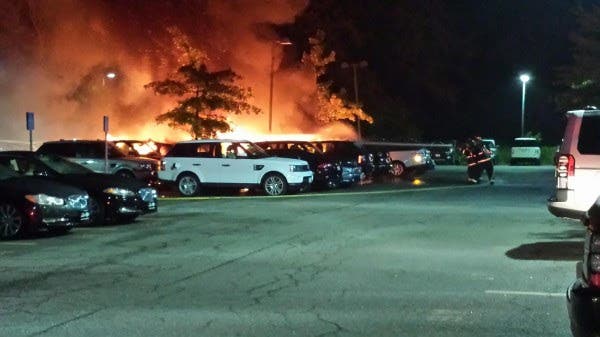 The fire started in a Jaguar and extended to the other vehicles, which included Land Rovers, Range Rovers, Jeeps and Jaguars. The damage is estimated at $500,000. There were no injuries.