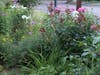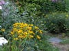 Sneaking in between the larger plants are various sorts of bluebells, coreopsis, a butterfly bush, and an outsize spirea.